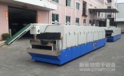 烘干爐部分外形尺寸:長8米,外寬1.4米,網帶寬1.2米,總高1.593米,裝有回流線,回流導軌采用40*60工業鋁型材,進料口斜坡長630mm,出料口斜坡延長1100mm,采用5mmPVC綠色防滑皮帶輸送;